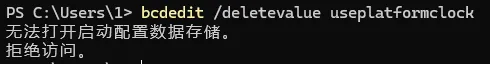 bcdedit /set useplatformclock false运行第一个指令时,若出现: