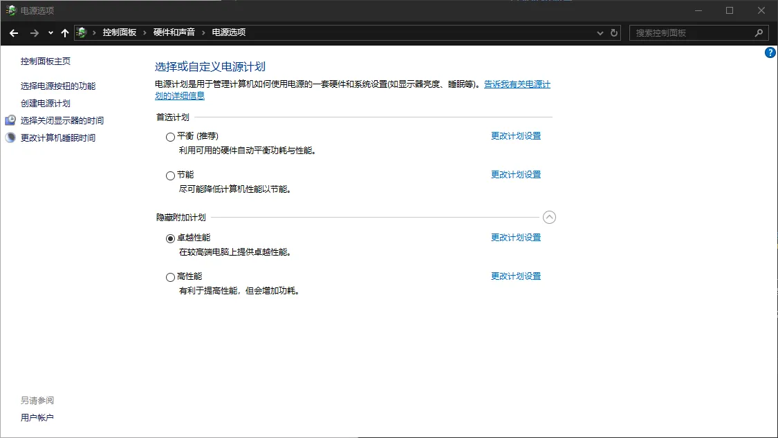 - 在设置中搜索 电源选项,进入电源计划,选择高性能或者卓越性能。